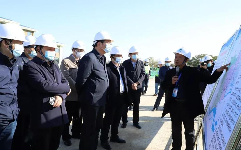 在施工現場,陳揚一行聽取了北山污水處理廠一期工程的項目建設情況,特別是項目當前的施工進度,詳細了解了項目建設過程中實際存在的困難和急需協調解決的問題,并就下一階段的項目建設提出了具體要求。