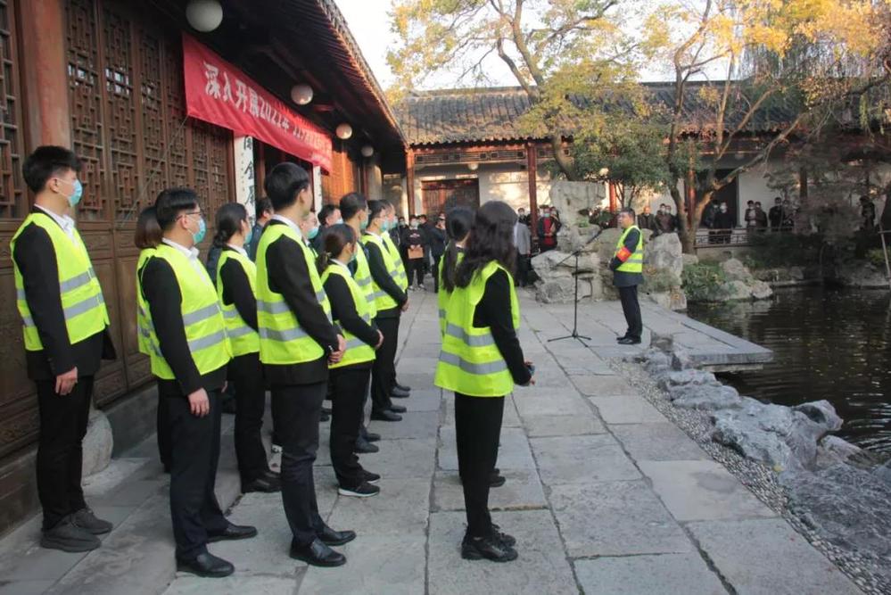 會后,全體人員在長樂客棧湖心亭,共同觀摩了由名城公司組織開展的“119”消防應急疏散與滅火演練活動。