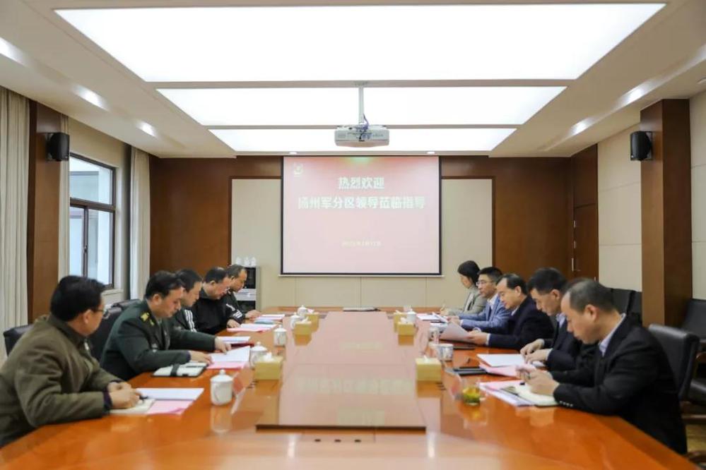 2月17日上午,揚州市委常委、揚州軍分區政委儲愛軍一行來到城控集團調研民兵組織建設工作。揚州市國資委黨委副書記張偉,城控集團黨委書記、董事長葉善祥,城控集團黨委委員、副董事長戚磊,城控集團黨委副書記徐飛以及揚州市國資委、城控集團相關部室負責人一同參加調研。