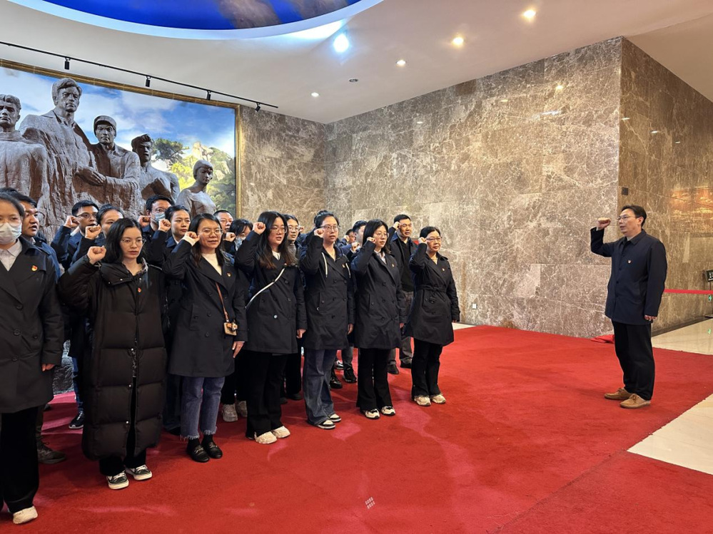 緬懷英烈祭忠魂,撫今追昔思奮進。在革命烈士紀念碑前,全體人員整齊列隊、肅穆佇立,向革命烈士三鞠躬致以崇高的敬意和深切的哀悼,并向革命先烈敬獻鮮花。隨后,在講解員的引導下,全體人員參觀揚州革命烈士紀念館,學習烈士事跡,重溫黨的歷史。館內記載了江上青、許曉軒等全國知名烈士和揚州各個革命時期200多名烈士的生平事跡和斗爭史料,革命先烈們浴血奮戰、英勇不屈的革命精神深深打動著在場所有人。全體黨員舉起右拳重溫入黨誓詞,重憶入黨初心,錚錚誓言在館內久久回蕩。