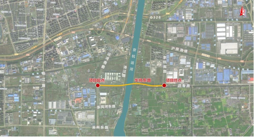 華揚路跨京杭大運河通道,路線全長約1.9km,該項目是揚州城市干線路網的重要組成,是京杭運河沿線重要的跨河通道。
