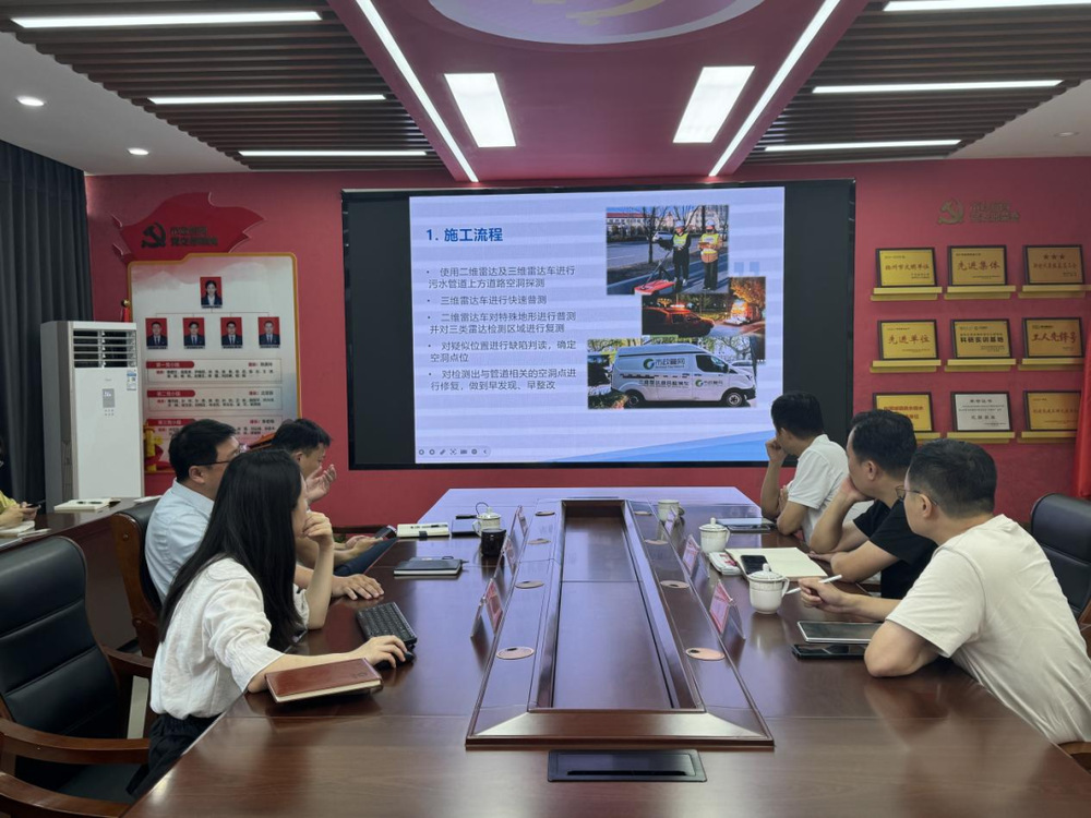 會上,管網公司重點介紹了雷達空洞探測的情況,深入解讀了雷達探測空洞技術導則,對雷達探測空洞專項工作的部署與探測成果以及空洞整改情況進行了詳細介紹,雙方重點針對排水管網缺陷引起的道路坍塌的處置經驗進行了交流,通過具體案例的剖析,雙方對于缺陷排查和應急處置有了更深的理解。隨后雙方就污水提質增效、管道全生命周期管理以及信息化管理等方面進行了深入探討。