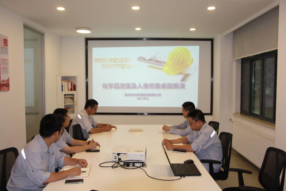為進一步提升公司職工在應對突發環境事件時的應急響應能力,最大限度減少損失和影響,8月13日下午揚州中法環境組織開展了化學品泄漏桌面推演活動,公司運營維護部、技術部、安環部、綜合部參加活動。