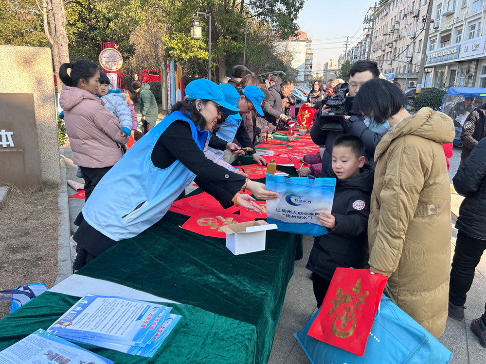 活動當天,長江水務公司第六黨支部“水質安全衛士”志愿者們早早來到寶帶社區中心廣場,準備好紅紙和筆墨紙硯,現場揮毫潑墨,筆鋒婉轉,書寫了一幅幅寓意吉祥的“?!弊炙偷骄用袷种??;顒蝇F場墨香四溢、熱鬧非凡,洋溢著喜慶的節日氣氛?;顒舆^程中,“水質安全衛士”志愿者們還向居民們發放了冬季用水防凍保溫宣傳單,提醒大家低溫冰凍天氣保護用水設施,安全安心用水。