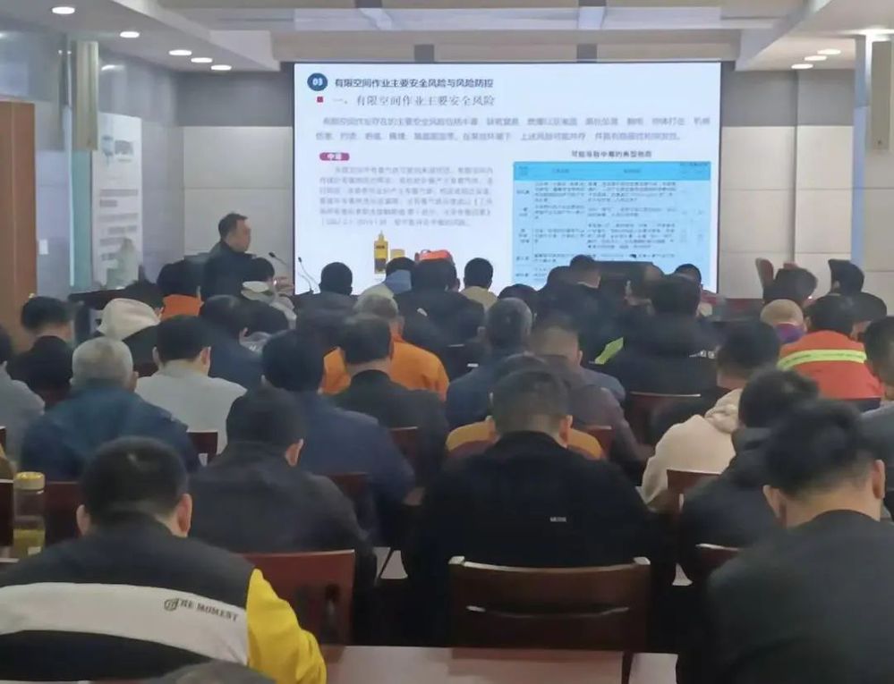 培訓會上,田老師詳細講解了有限空間法律法規、危險源辨識、操作規程、風險防控要點、作業審批、安全防范措施、應急救援技能等方面的內容。結合近年來有限空間作業中的典型事故案例,對有限空間事故類型和易發多發領域展開深入剖析,以案說法,警醒安全責任人熟練掌握有限空間作業風險辨識方法和作業要求,堅決杜絕違規作業和盲目施救,著重強調了日常工作中注重細節、嚴格遵守安全規范的重要性,從安全生產專業角度提出了意見和建議。