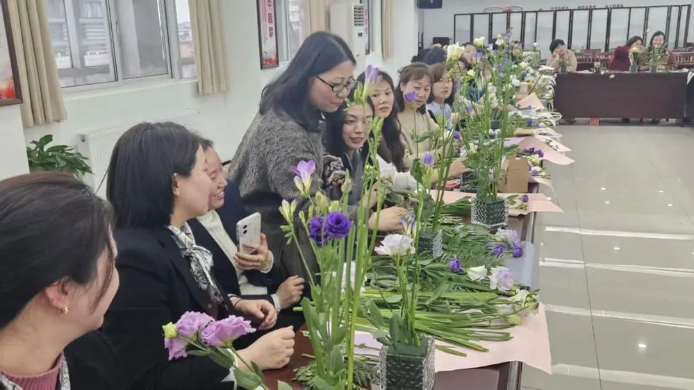 參與活動的女工們紛紛動手實踐,現(xiàn)場氣氛熱烈。葉子老師穿梭于學員之間,耐心指導,幫助大家調整作品。活動結束時,每位學員都完成了自己的插花作品,現(xiàn)場花香四溢,充滿了藝術氣息。