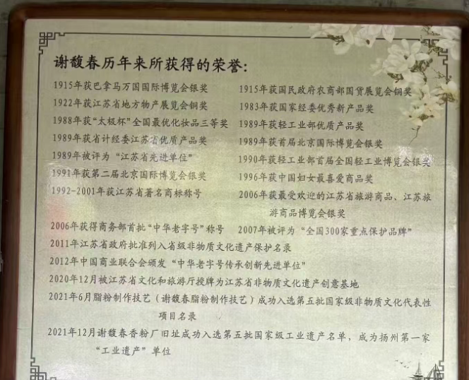 馥園深處,謝箴齋先生的書房猶存墨香。案頭那本泛黃的賬冊(cè),記載著民國初年的黃金歲月:梳頭油日銷百瓶,鵝蛋粉供不應(yīng)求,連上海灘的名媛都托人捎帶。可賬冊(cè)里也藏著戰(zhàn)火的灰燼,抗戰(zhàn)時(shí)期的某頁,墨跡忽然洇開,像是淚水浸透了紙背——那是謝家人守著作坊,在敵機(jī)轟鳴中堅(jiān)持手作的印記。記得1915年巴拿馬萬國博覽會(huì)上,當(dāng)謝馥春的香粉盒被輕輕揭開,銀質(zhì)的獎(jiǎng)?wù)略诋悋l(xiāng)的燈光下閃爍,那是中國美妝第一次以東方神韻征服世界的時(shí)刻。這一榮譽(yù)不僅奠定了謝馥春的國際品牌地位,也為中國化妝品行業(yè)爭得了榮譽(yù)。