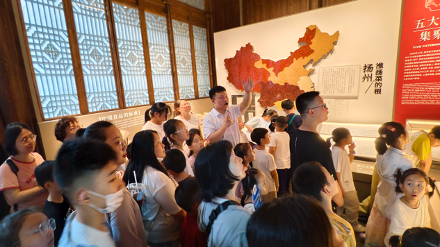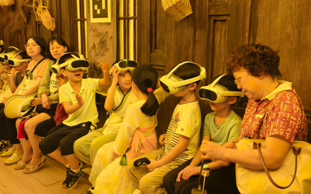 活動中,孩子們首先參觀了淮揚菜博物館,深入了解淮揚菜的歷史文化與精湛技藝。隨后,大家走進“唐朝詭事錄”VR劇場,戴上VR眼鏡后,孩子們跟隨劇情線索穿梭于大唐盛景之中,在虛實交融的沉浸式體驗里與古人展開“跨時空對話”。活動尾聲,親子家庭相聚對影小酒館,共同動手制作傳統竹編扇,感受手工技藝蘊含的匠心之美。