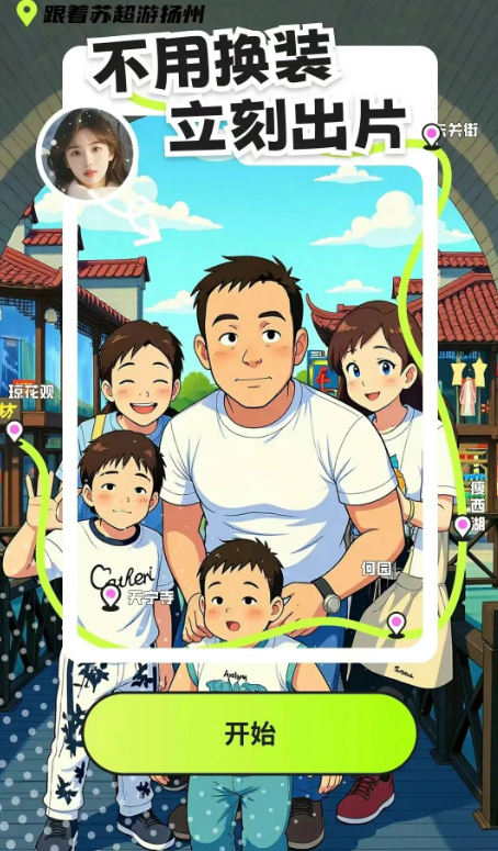 AI旅拍核心依托先進(jìn)的AIGC算法。其強大的面部識別與重建技術(shù),精準(zhǔn)捕捉游客五官特征;智能光影膚色匹配技術(shù)則實現(xiàn)影像與揚州文化元素的無痕自然融合。支持單人和多人寫真、卡通濾鏡風(fēng)格,多人合拍時智能協(xié)調(diào)不同人物的風(fēng)格融合,確保群體照既風(fēng)格統(tǒng)一又個性鮮明。最終生成的每一張照片,都是藝術(shù)感與真實感兼具的“穿越”瞬間,成為游客獨一無二的揚州珍藏記憶。