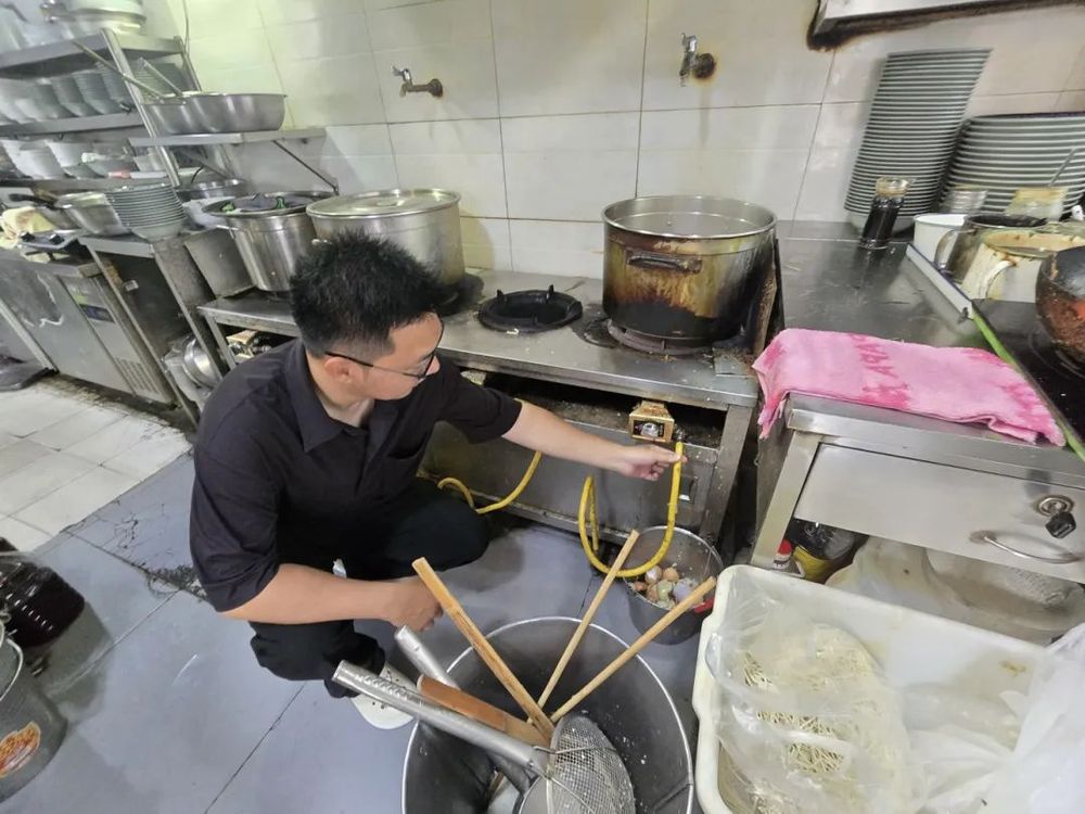 上午7點,東關街的晨光剛剛漫過青磚墻,安全員魯毅便已穿上工作服,開始了一天的工作。他首先來到街區東側的餐飲商鋪聚集區,手持測溫儀檢查后廚用電情況。“王叔,這根軟管用了三年了吧?臺風天風大,咱們換個防爆管更安心。”魯毅邊說邊聯系燃氣公司工作人員上門更換新管,不到一小時便完成更換。這是他今日處理的第3起燃氣隱患。