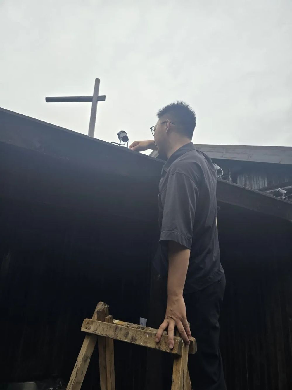 下午2點,魯毅帶著“安全禮包”來到街區某民宿。他爬上木梯檢查屋頂太陽能熱水器固定情況,發現支架螺絲松動,立即掏出電動扳手,指導商戶用扳手進行緊固。轉入公共區域,魯毅的目光被墻角斑駁的接線板吸引。“王姐您看,這截銅線已經薄得像紙片,同時開空調和熱水器,它就會像您煮的陽春面——發燙、發軟!”話音未落,他掏出帶有過載保護的新插座,當著眾人接上電熱水壺,在熱水壺燒開的瞬間,咔嗒一聲清脆的斷電聲讓空氣凝固,商戶不由得驚出了一身冷汗。